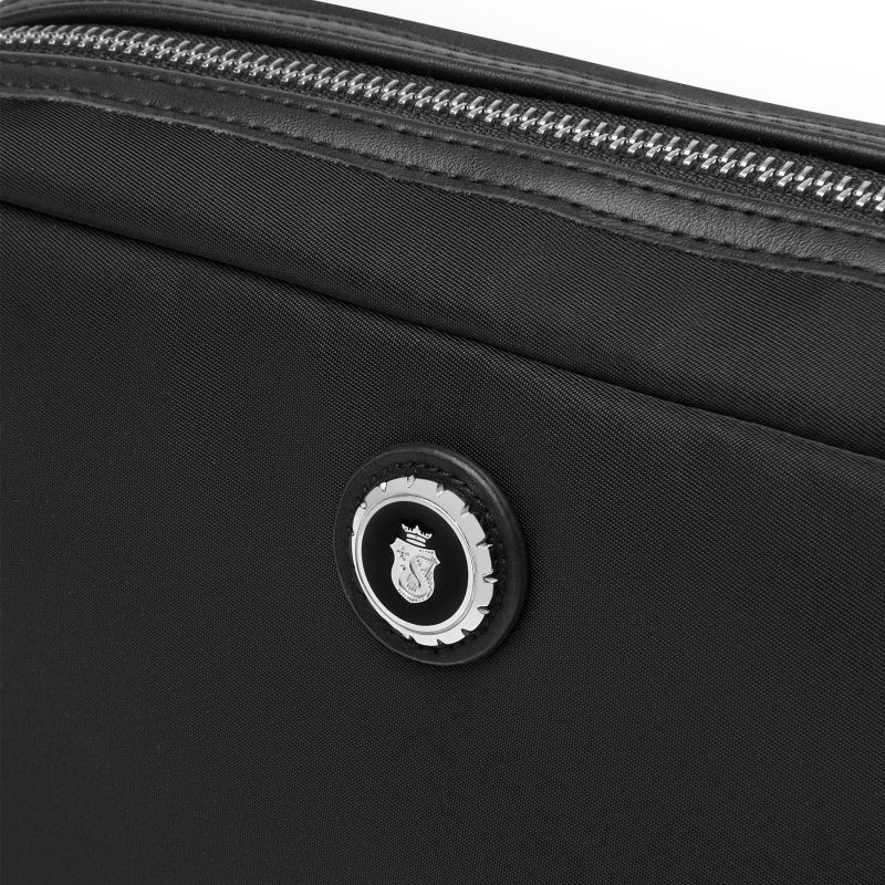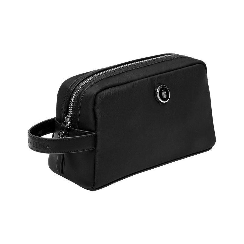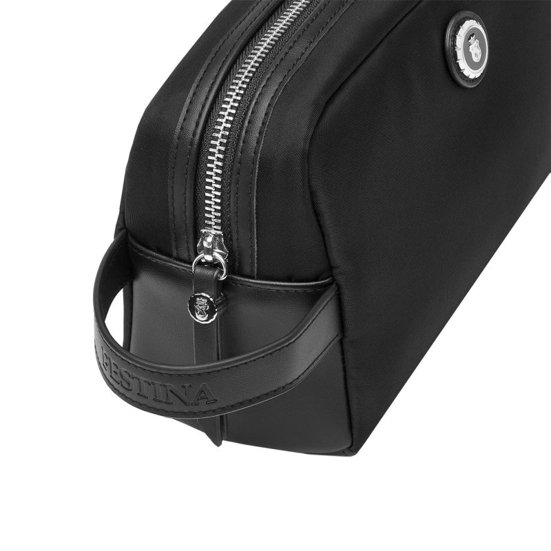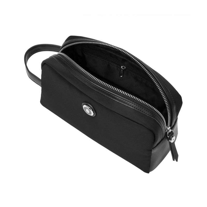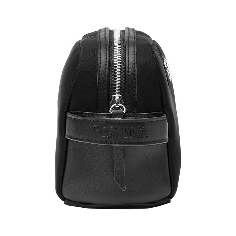 Чантата тип несесер Festina Button е изработена от гладък полиестер с текстурирани кантове. Хромираните акценти и луксозни метални детайли придават елегантен завършек, но с нотки небрежна естетика.