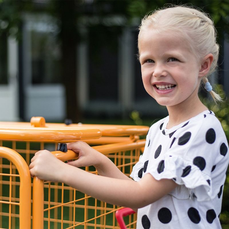 Благодарение на заключващите се колелца, клетката се премества лесно както в спортната зала, така и на открити площи.