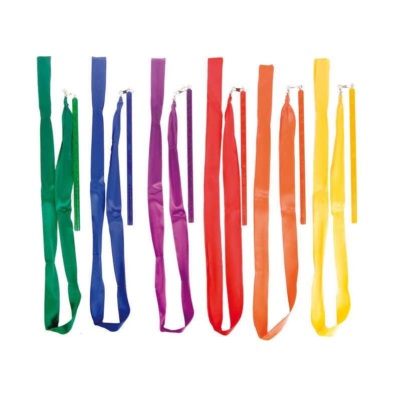 Комплект от ленти за художествена гимнастика в различни цветове.