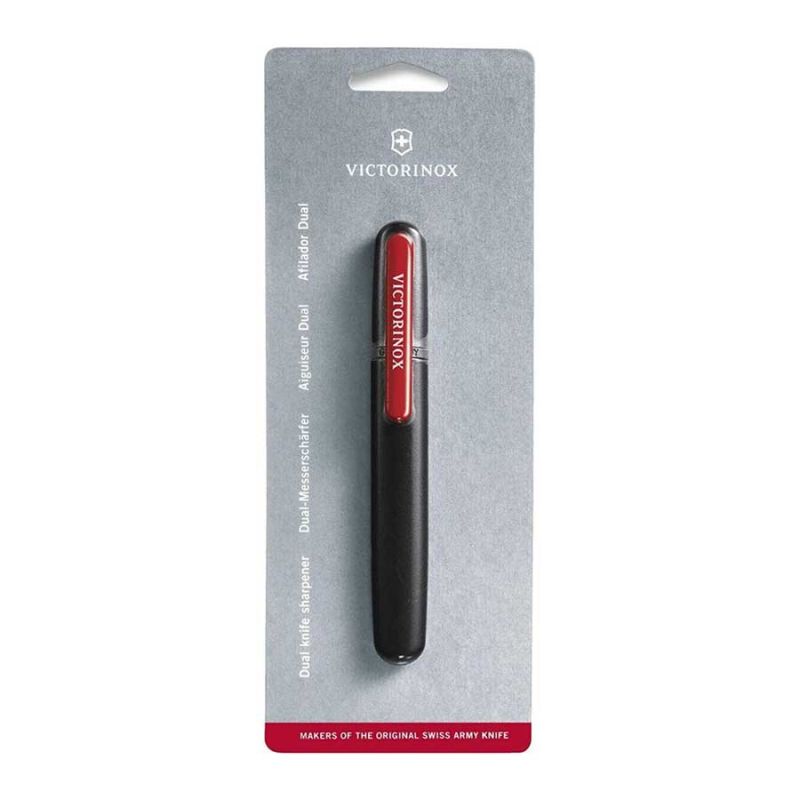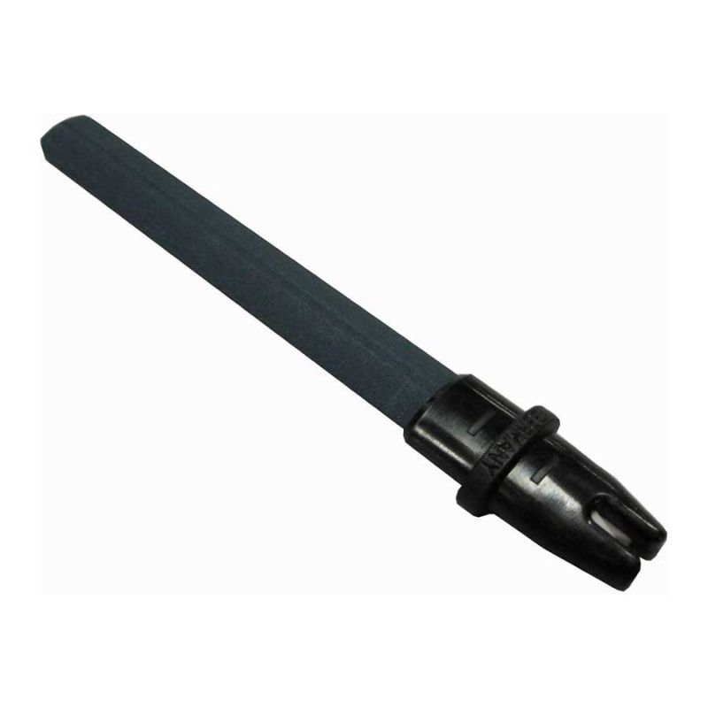 Перфектното преносимо решение за заточване на всички прави остриета!Интелигентен начин за заточване на ножовете само за секунди. От едната страна точилото има овален камък за заточване с жлеб за кукичка за риболов. Другият край е точило с V-образен жлеб, което Ви позволява бързо да заточвате ножовете си в движение. Пластмасовият калъф, който покрива камъка може да бъде издърпан и след това поставен обратно, което Ви позволява да го използвате като удобна дръжка. Получавате удобен и сигурен захват, докато заточвате по този начин. Висококачественият овален камък е с титаново покритие и ще запази качеството си на заточване за продължителен период от време. Осигурете остър огледален полиран ръб на всички Ваши ножове, като по този начин гарантирате, че винаги имате лесно и сигурно рязане! Дължина: 230 mm. Дебелина: 18 mm. Тегло: 40 g.