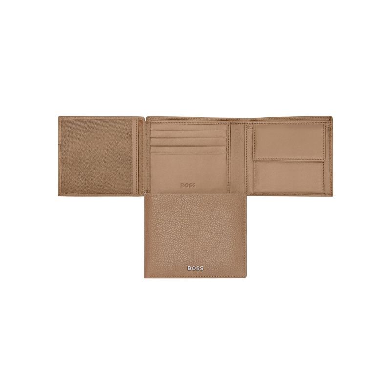 Hugo Boss Портфейл Classic Grained, с капак и отделение за монети, карамел