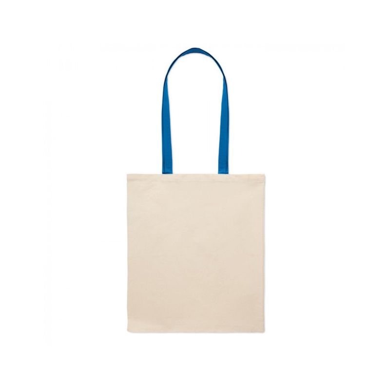 Памучната пазарска чанта е проектирана с дълги дръжки в син цвят, които освен, че правят носенето на покупките лесно и удобно, са чудесен завършек на всяко облекло!