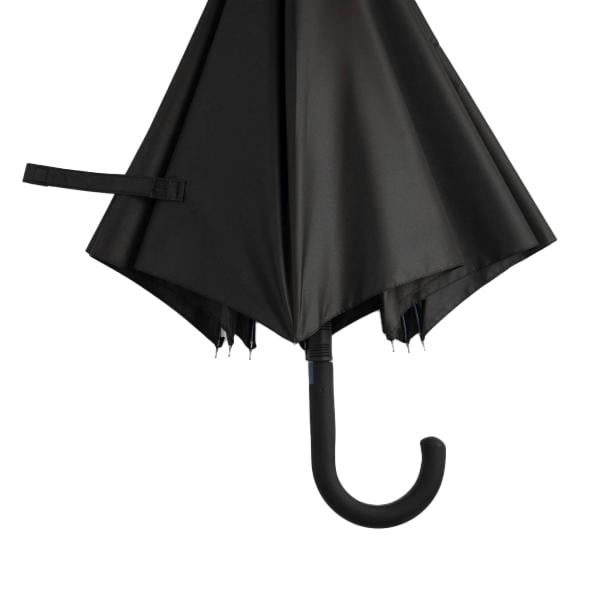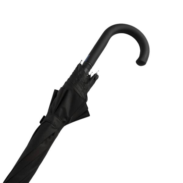 Металните върхове и гумирана извитата дръжка с бутон за автоматично отваряне придават на чадъра както здравина, така и стилен и изискан вид.