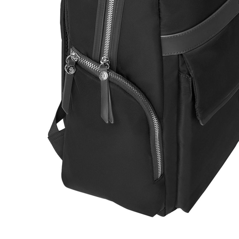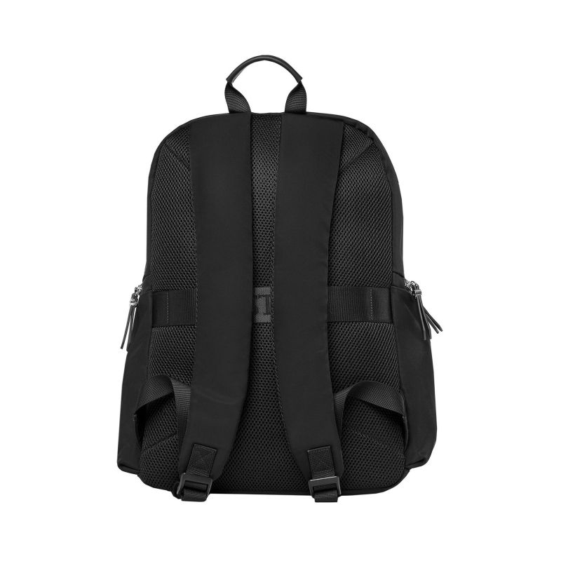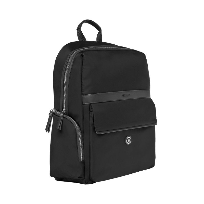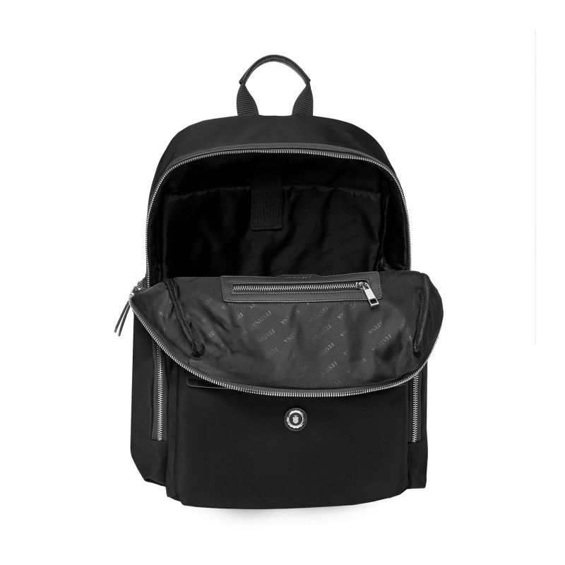 Раницата Festina Button е изработена от гладък полиестер с текстурирани кантове. Хромираните акценти и луксозни метални детайли придават елегантен завършек, но с нотки небрежна естетика.