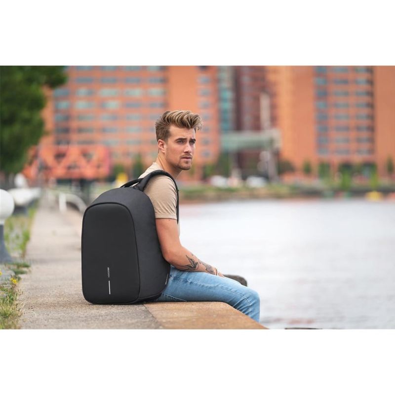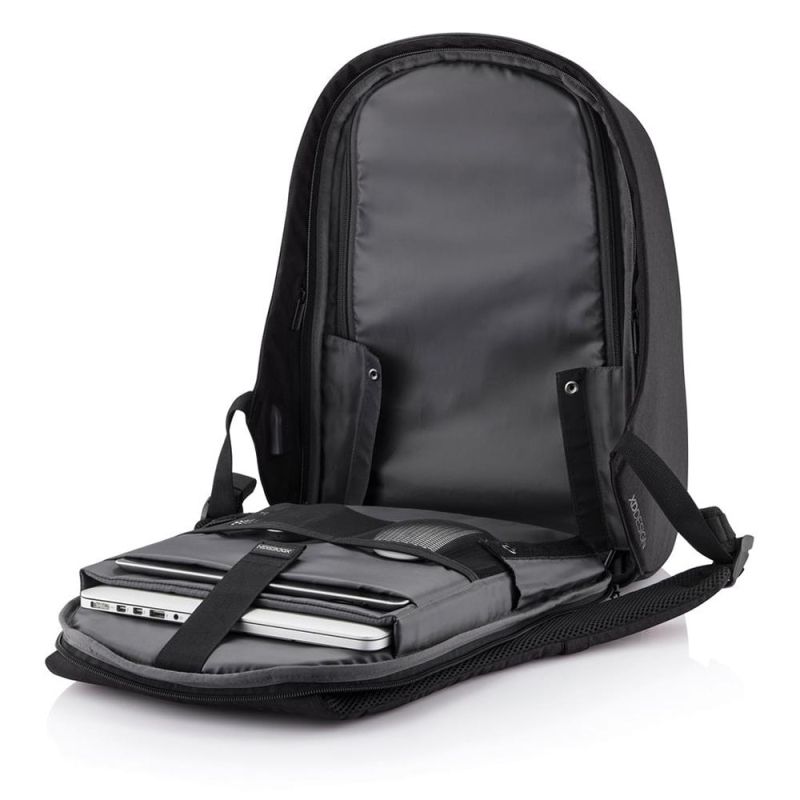 Раницата Bobby Hero е водоустойчива, обезопасена против кражба, с рефлекторни предпазни ивици и скрити ципове.