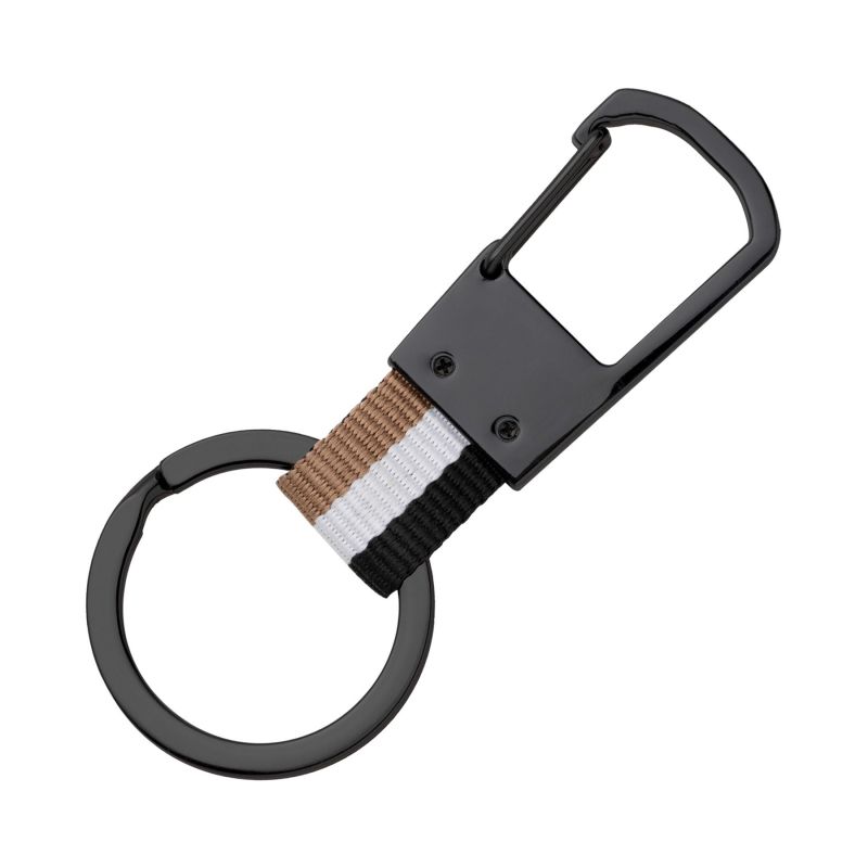 Характерната трицветна каишка на ключодържателя HUGO BOSS ICONIC е подсилена от луксозни тъмни хромирани метални акценти, превръщайки ежедневният прост ключодържател в модерен и непретенциозен аксесоар.