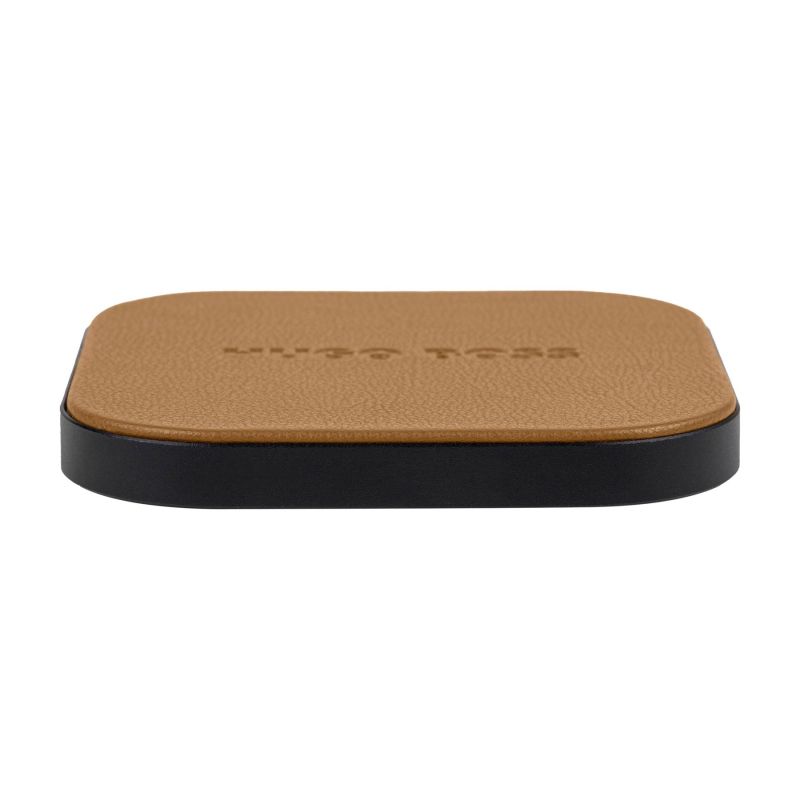 Това зарядно устройство с квадратен дизайн има алуминиево покритие с елегантни заоблени ъгли и фино лого на Hugo Boss.