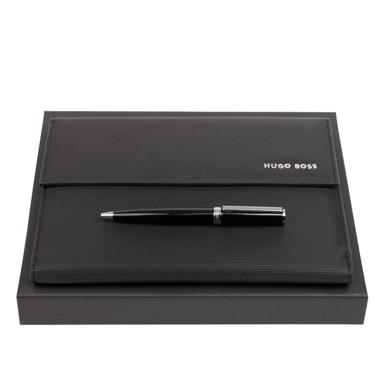 Hugo Boss Комплект папка Pinstripe, А5 и химикалка Gear Icon, черни