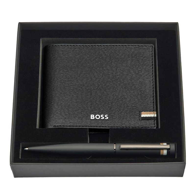 Hugo Boss Комплект портфейл и химикалка Iconic, черни