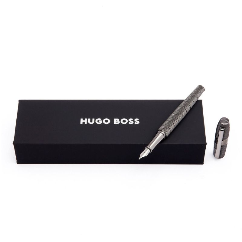Серията пишещи средства Quantum на марката Hugo Boss се отличава със своя интересен дизайн. Балансираната й стилна форма е с дълбока, матова гравюра и бронзово покритие. Цялата повърхност е украсена с вертикални ивици, които заличават границата между горната и долната част на цевта.