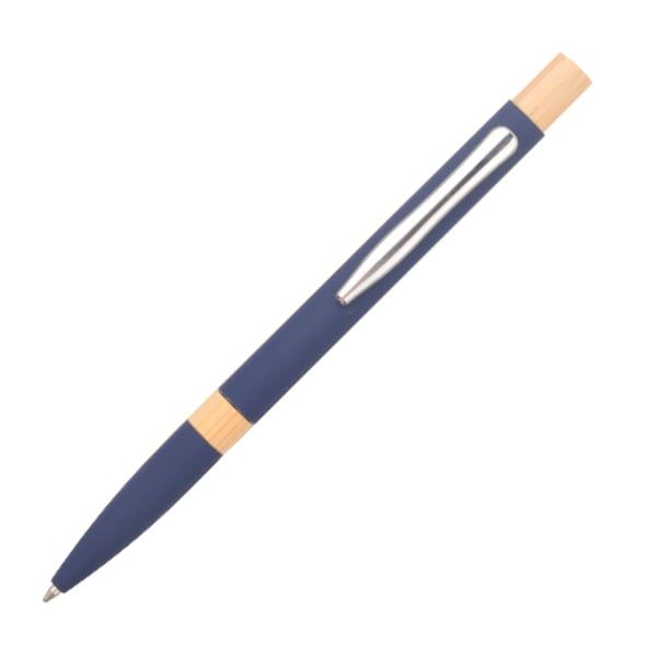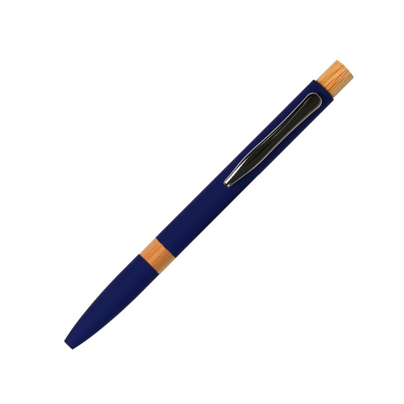 Office 1 Химикалка Mentor, метална, гумирана, бамбуков топ, синя