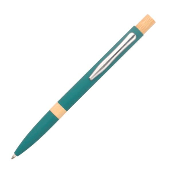 Office 1 Химикалка Mentor, метална, гумирана, бамбуков топ, зелена