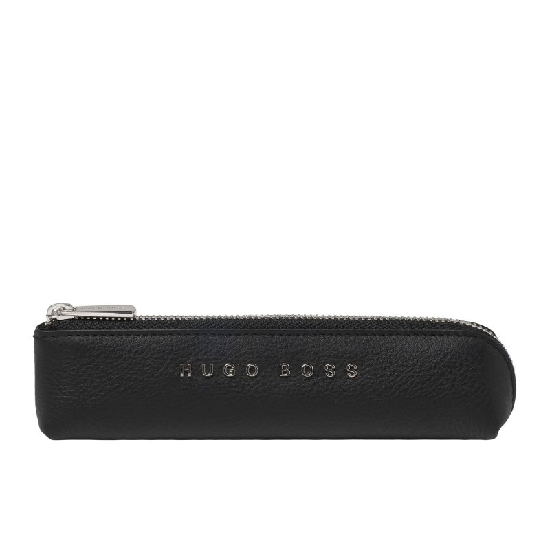 Hugo Boss Калъф Storyline, за пишещо средство, с цип, кожен, черен