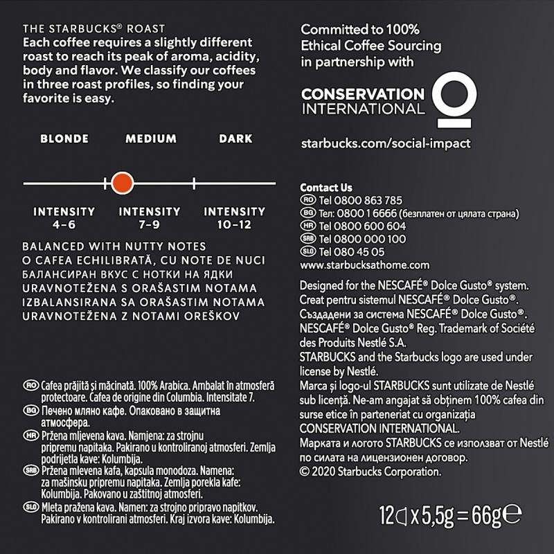Насладете се на ароматно еспресо с орехови нотки и изкючителен вкус, благодарение на кафе капсулите Nescafe Dolce Gusto Starbucks. Сега имате възможност да опитате качествена ободяваща напитка у дома, без да ви се налага да посетите най-близката кафетерия.