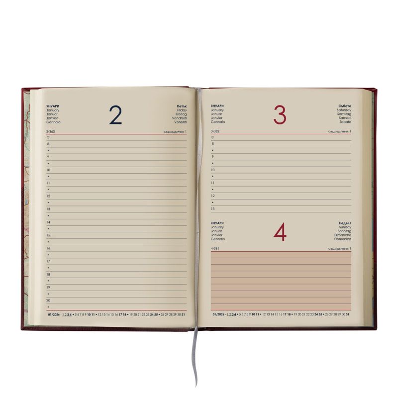 Календар-бележник Мадера, с дати, A5, кожена подвързия, червен