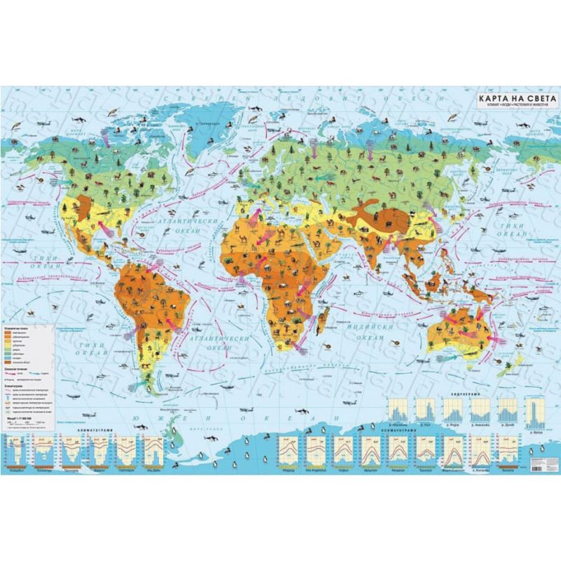 Стенна карта на света, климатична, 200 x 140 cm