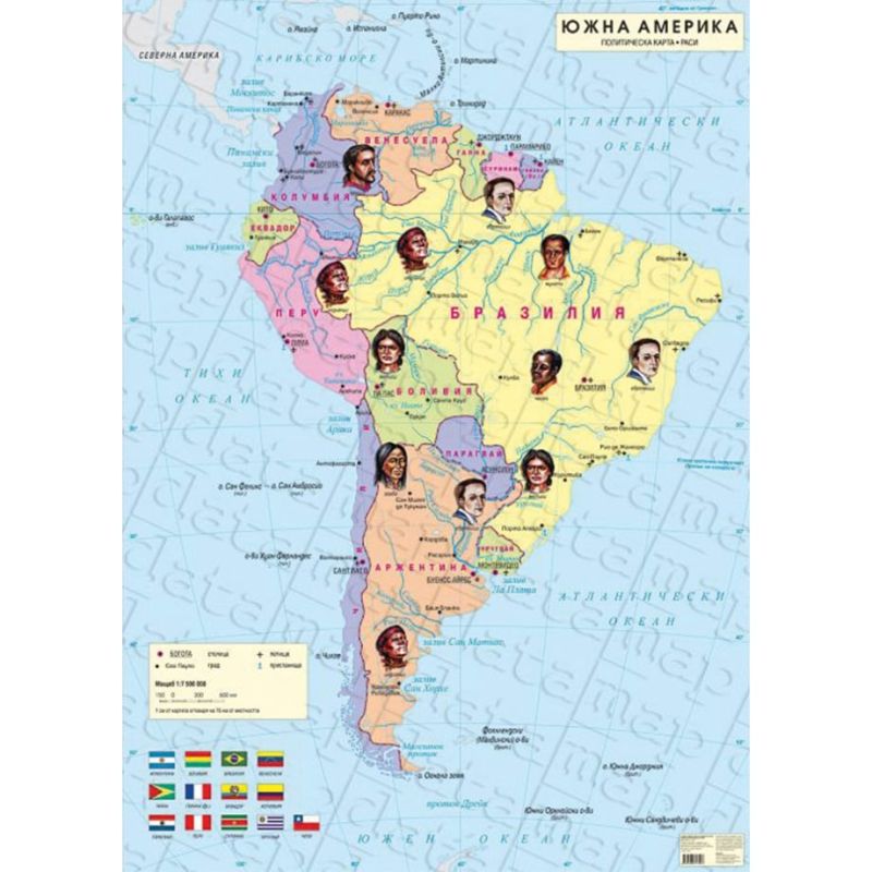 Стенна карта на Южна Америка с раси, политическа, 100 x 140 cm, ламинирана