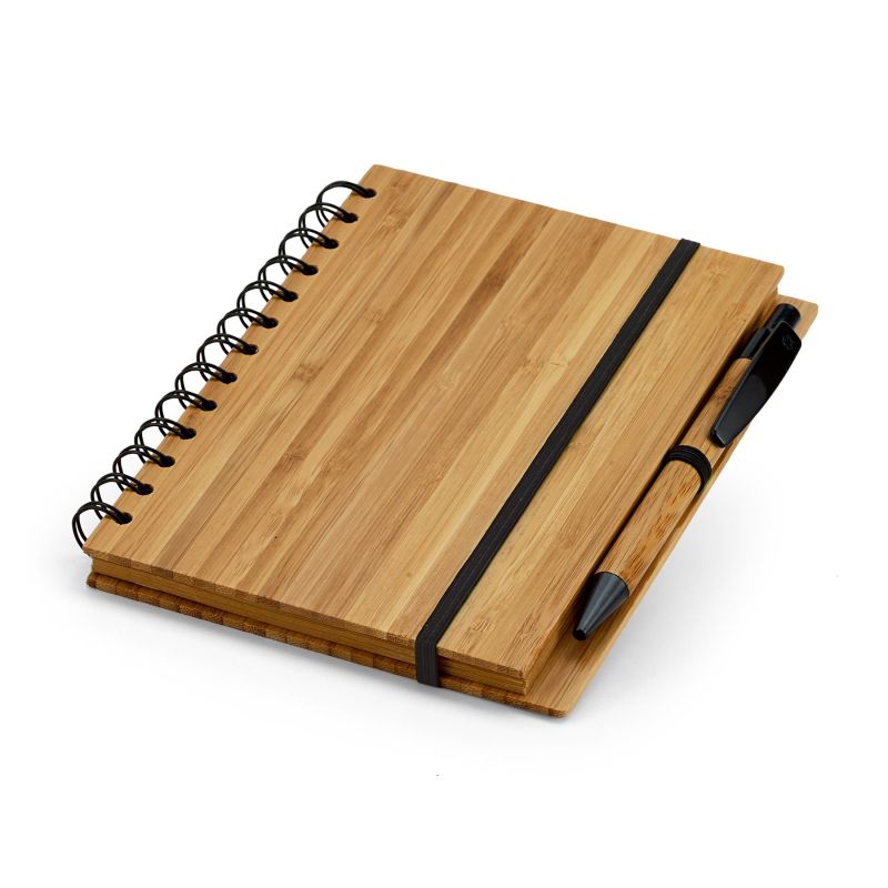 Hi!dea Тефтер Bamboo, A5, с ластик, линирани редове, рециклирана хартия, твърда бамбукова корица, 140 листа, с включена химикалка