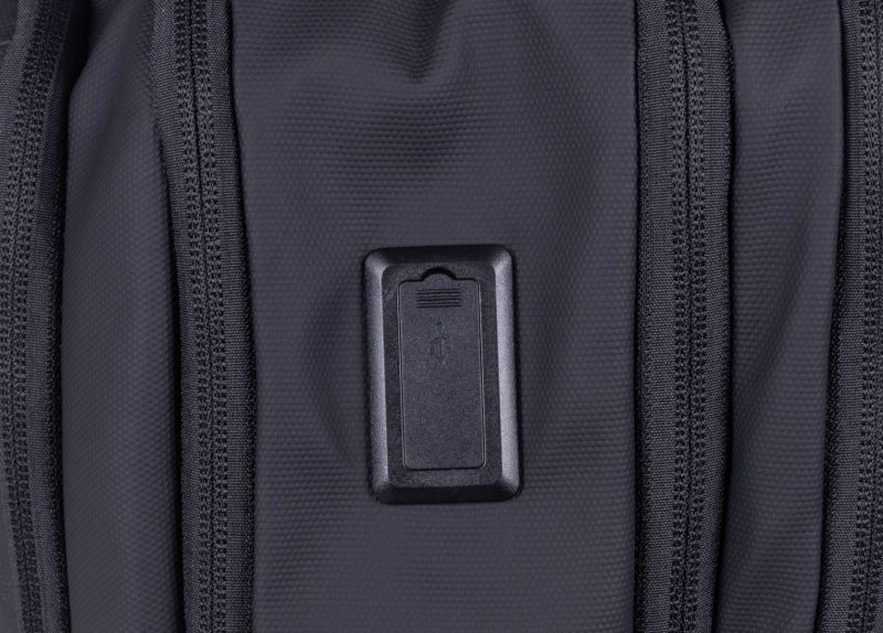 Водоустойчива. С лента за поставяне върху куфар. USB порт. Скрит джоб за защита от кражба. Размери: 29 х 13 х 43 см.