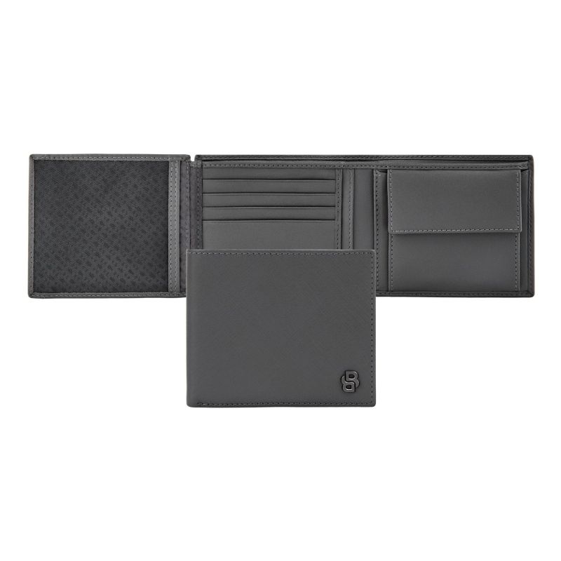 Hugo Boss Портфейл Saffiano Double B, с капак и отделение за монети, сив