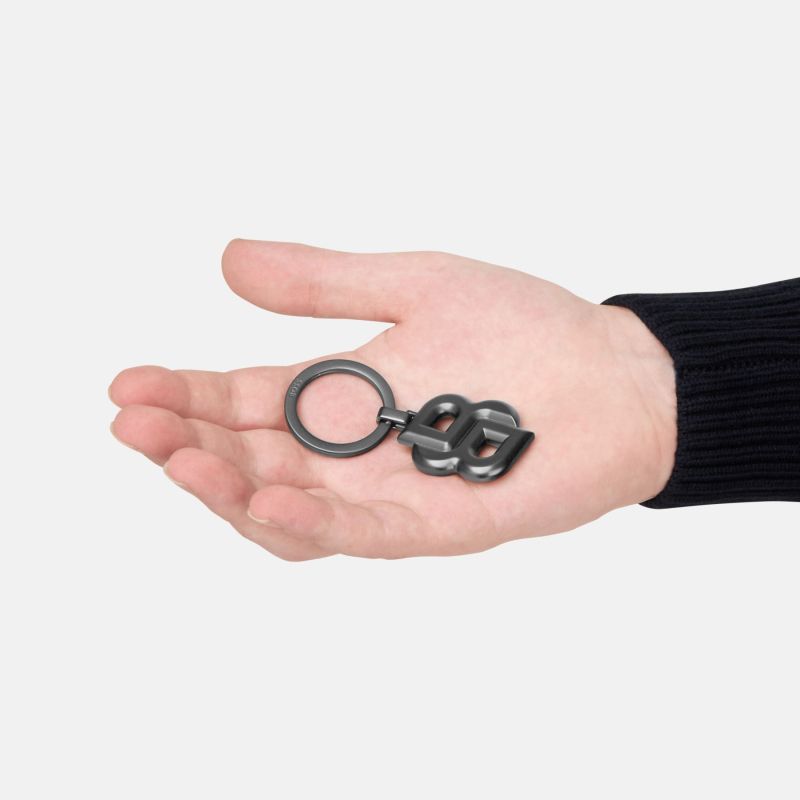 Hugo Boss Ключодържател Double B, тъмносив мат