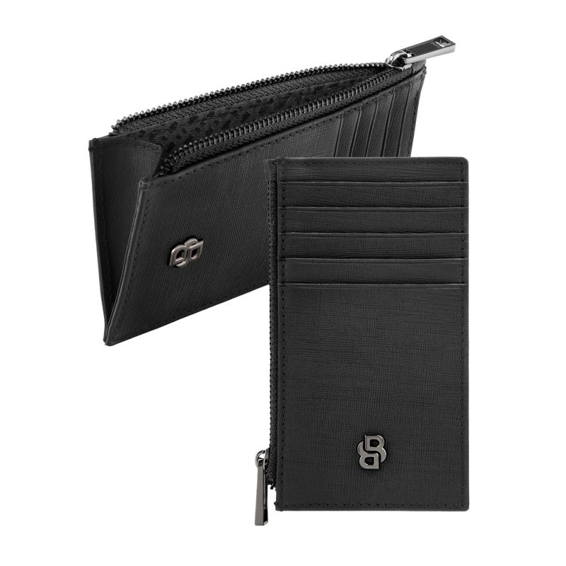 Hugo Boss Калъф за карти Saffiano, с 5 отделения, с цип, черен