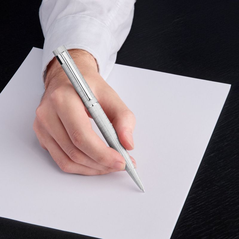 Силуетът LOOP съчетава динамични и модерни дизайнерски елементи, за да предложи оптимално изживяване при писане. В това издание, вдъхновено от Баухаус архитектурата, върху четкан алуминий е нанесен впечатляващ геометричен решетъчен мотив. Съчетавайки текстура и графика, моделът придобива елегантно и съвременно излъчване, което подчертава неговата динамична форма. Финалният акцент е триизмерното лого Double B в горната част.