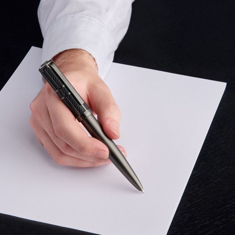 Hugo Boss Химикалка Frame Grid, тъмносива