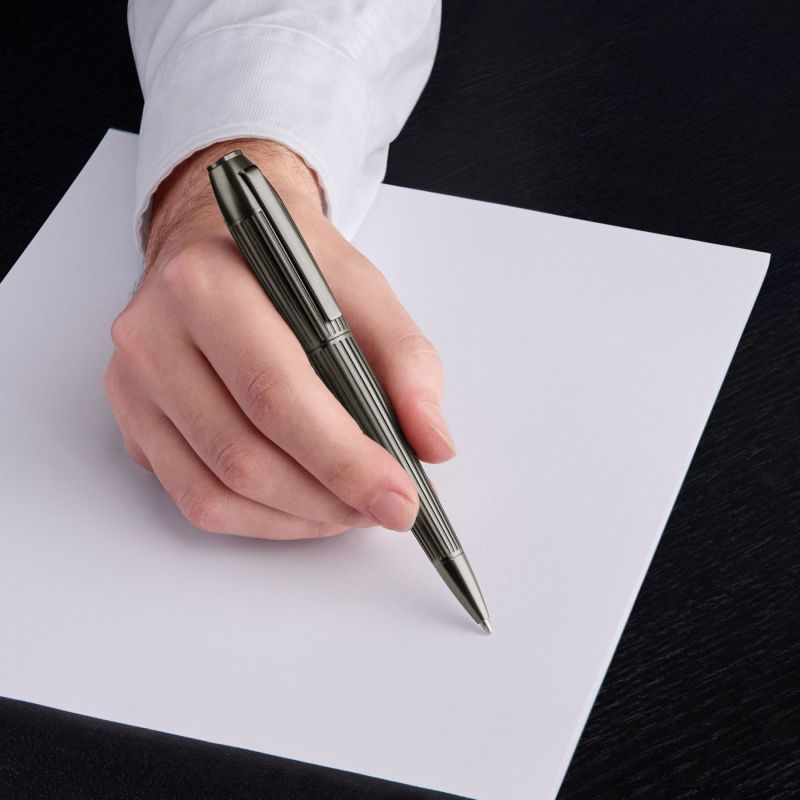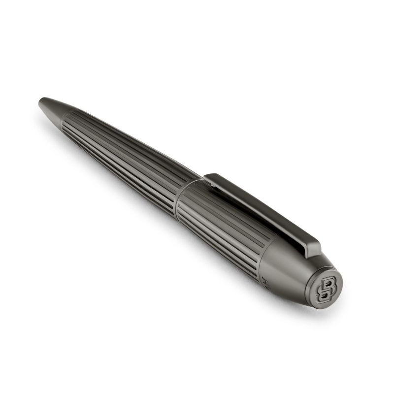 Изискана химикалка, която съчетава сила и елегантност чрез дълбок релефен pinstripe мотив и модерно матово покритие в цвят gunmetal. Прецизната изработка и фините детайли му придават едновременно ценен и ненатрапчив характер, а съвременният му дизайн го превръща в впечатляващ инструмент за писане.