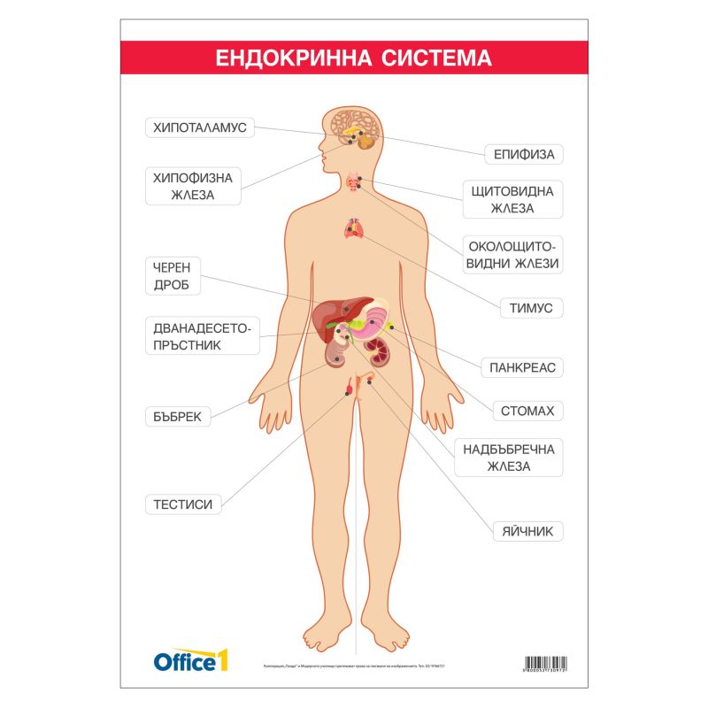 Office 1 Ученическо табло ''Ендокринна система'', 70 x 100 cm