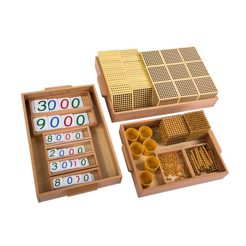 - 9 дървени куба с размери 8.3 х 8.3 х 8.3 cm, представляващи хилядни;