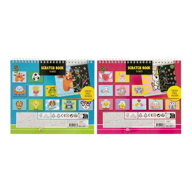 Всяка книжка съдържа 10 листа със забавни изображения и инструмент за издраскване.