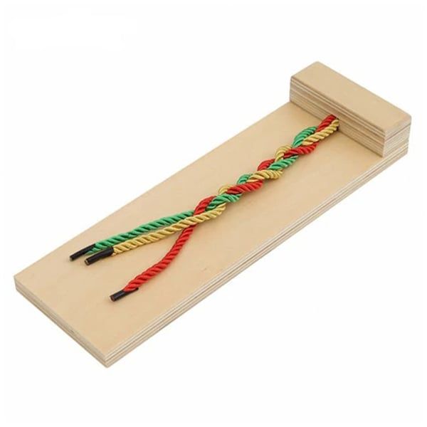 Тази дейност е идеален пример за това как една задача на Монтесори може да научи и развие много различни умения. Дъската за сплитане на Монтесори ангажира тактилни и визуални сензорни умения и подобрява фините двигателни умения. Помага за укрепване на пръстите за писане и насърчава сръчността. Освен това, чрез физическо сортиране на различните цветни въжета и чрез боравене с осезаеми предмети, детето е в състояние да се ангажира на физическо ниво и по този начин тази Монтесори задача насърчава координацията между ръцете и очите и развитието на мозъка.