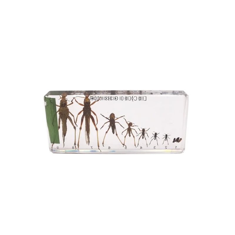 Макроскопският препарат представя отделните етапи на трансформация на скакалците.