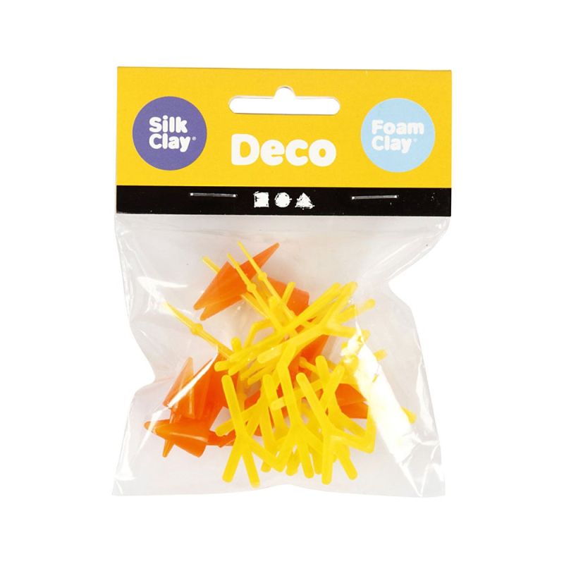 Твърди, цветни пластмасови пилешки човки и крачета за създаване на пилета. Всеки елемент има монтажен щифт, който се мушка в стиропорa и меката глина Silk Clay®.