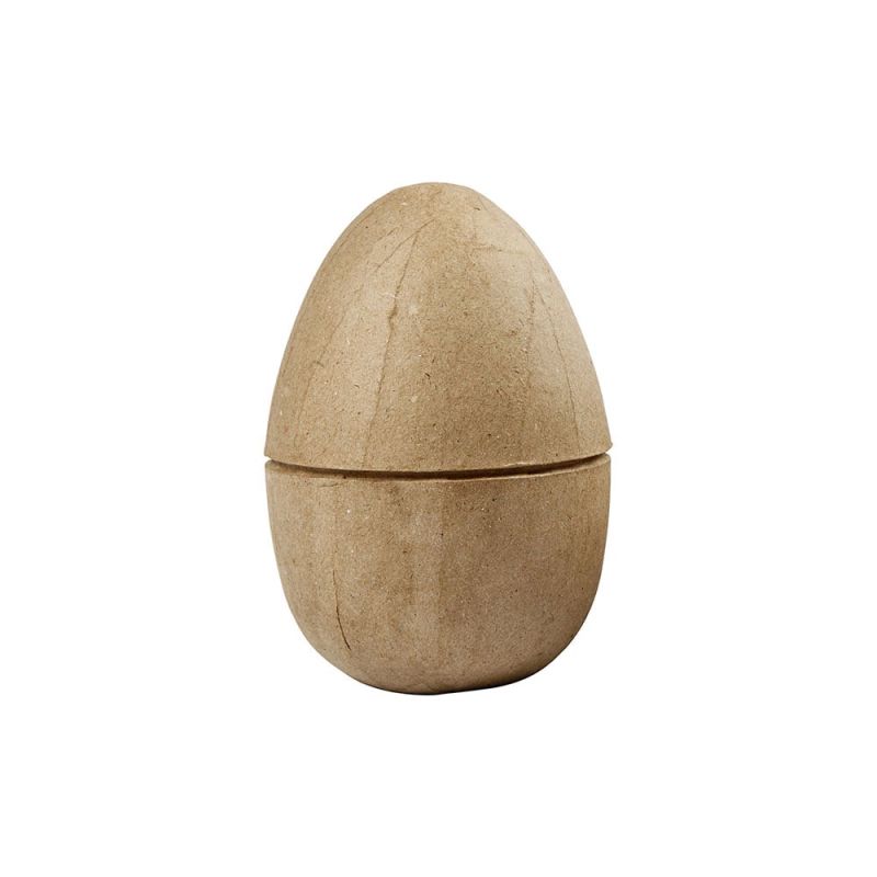 Ръчно изработено яйце от две части, изработено от папиемаше с пластмасова вътрешност, която осигурява стабилност.