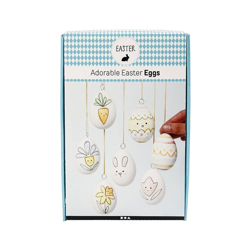 Комплект от различни креативни материали за декорация на 7 великденски яйца.