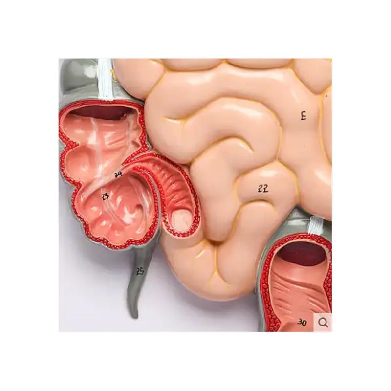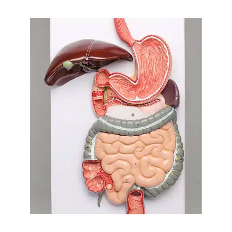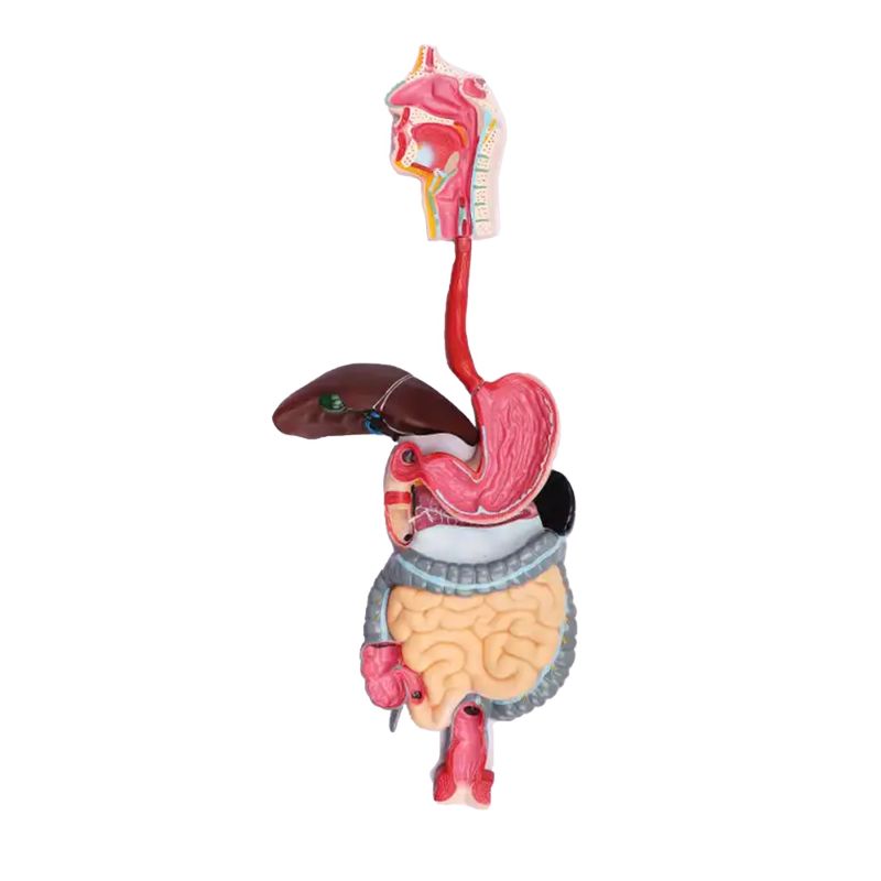 Този модел в естествена големина показва храносмилателния тракт на човека от устната кухина до ректума.