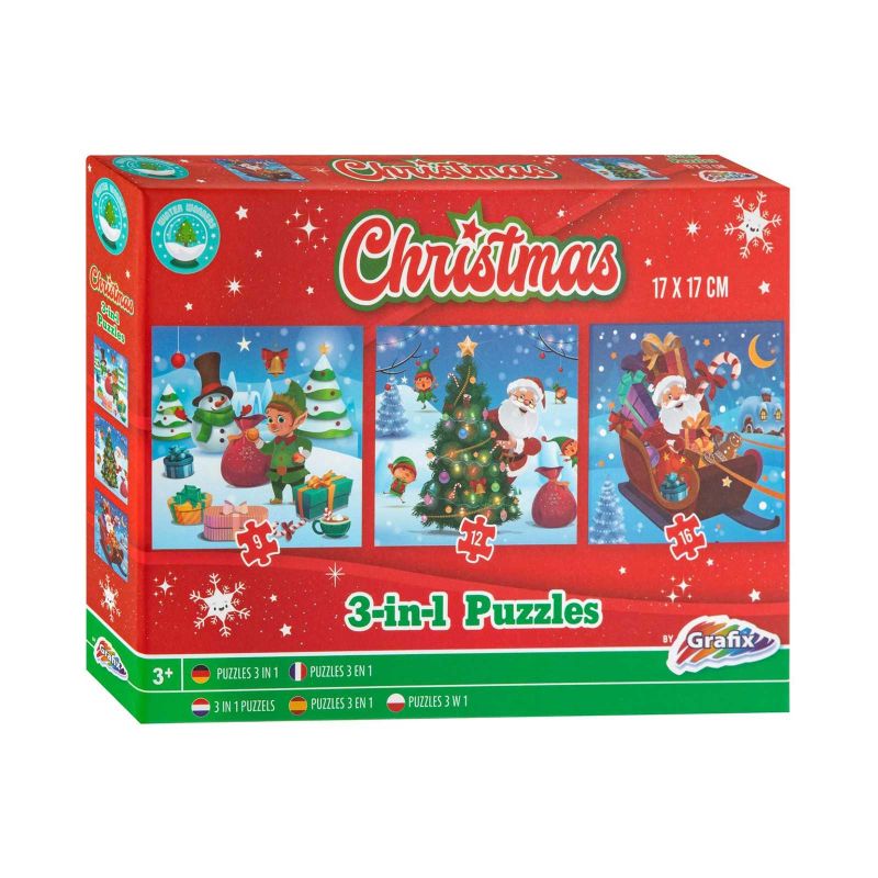 Moxy Пъзел, с коледни мотиви, 3 в 1, 17 х 17 cm, 9, 12 и 16 части