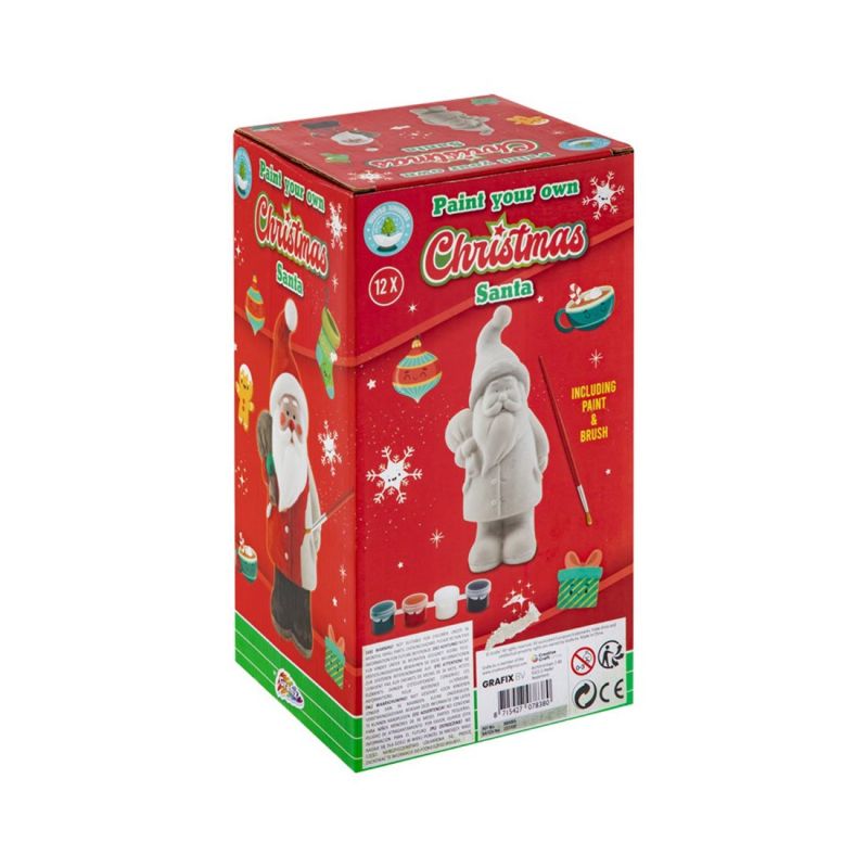 Комплектът включва керамичен Дядо Коледа, 4 цветни бои и четка за рисуване.