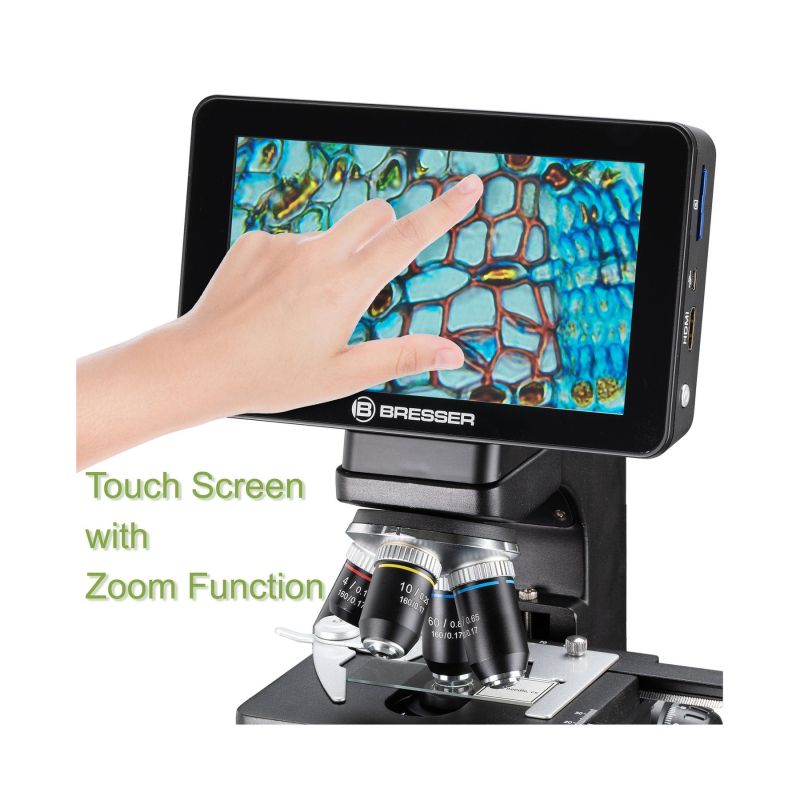 Вграденият модерен сензор за камера Sony IMX206 с 16MP дава брилянтно изображение с добър контраст на монитора. Потребителят може да променя настройките и да заснема изображения и видео удобно със сензорния екран. Изображения с 16MP и Full HD видео могат да се съхраняват директно на SD карта (SD картата не е предоставена). Микроскопът има и HDMI връзка, така че изображението се показва лесно на голям монитор, телевизор, излъчвател или смарт дъска. Резултатите могат да се споделят с по-голяма аудитория в лекции или семинари.