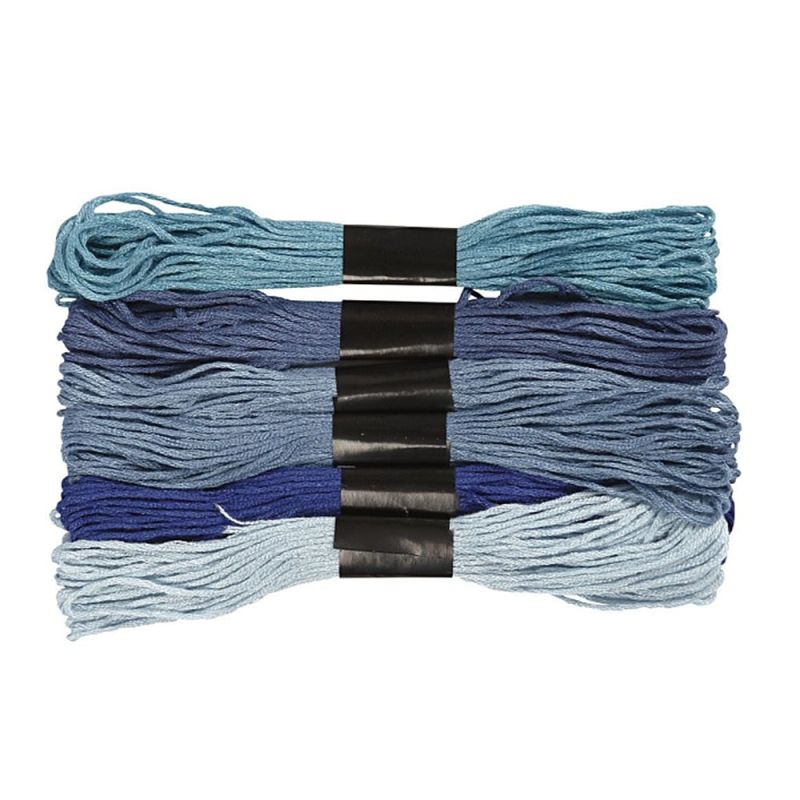 Конци за бродиране/тъкане от 6 нишки с много фино качество – 100% мерсеризиран памук.Асортимент с 6 съчетаващи се цвята, всеки по 8 m, с дебелина 1 mm. Цвят: син.