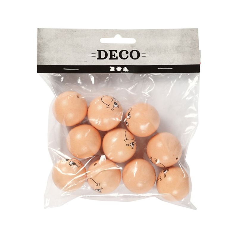 Creativ Company Главички с лице, дървени, 30 mm, 10 броя