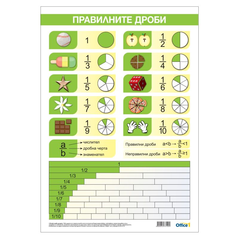 Office 1 Ученическо табло ''Правилни дроби'', 70 x 100 cm