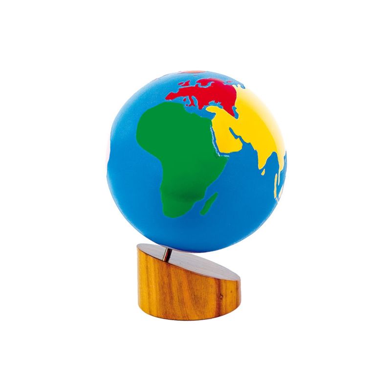 Глобусът е специално изработен - континентите са отбелязани в различни цветове, а водата е обозначена в син цвят и притежава гладка повърхност.