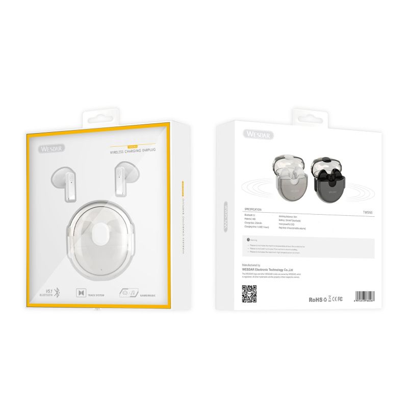 Слушалки Wesdar TWS165, безжични, с Bluetooth, със зареждащ кейс, бели