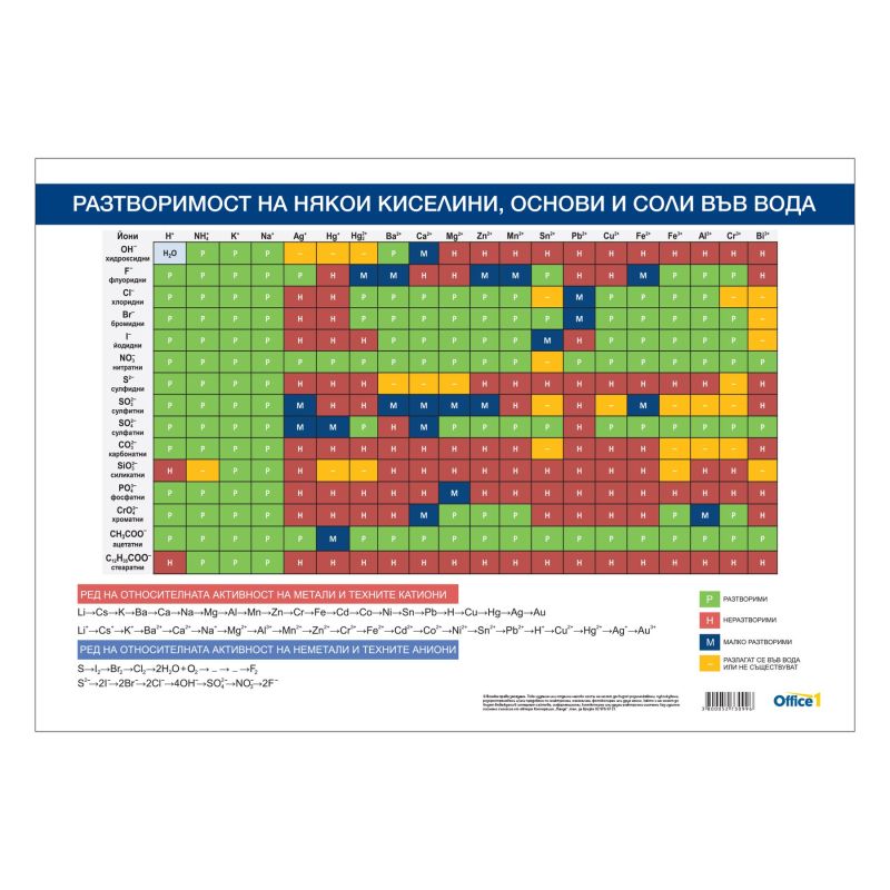Office 1 Ученическо табло ''Разтворимост на киселини и соли'', 100 x 70 cm