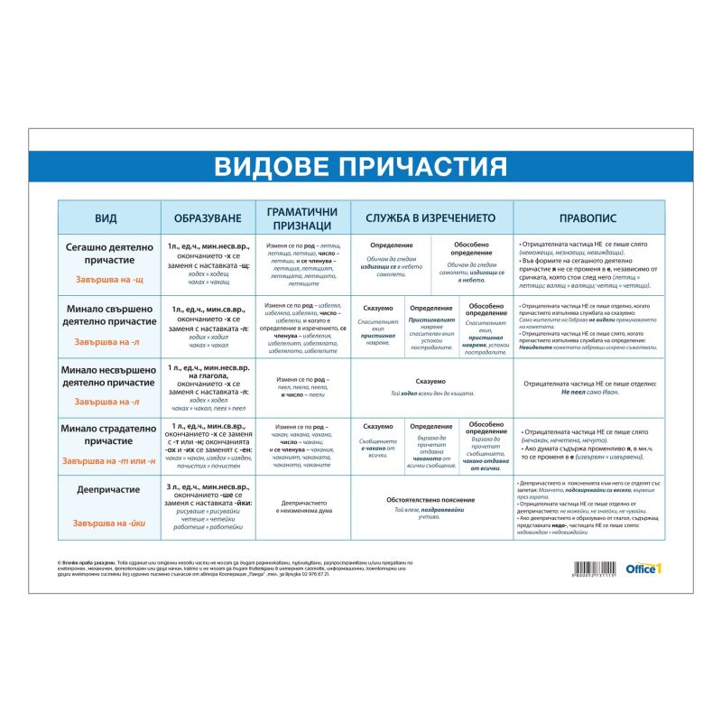Office 1 Ученическо табло ''Нелични глаголни форми'', 100 x 70 cm