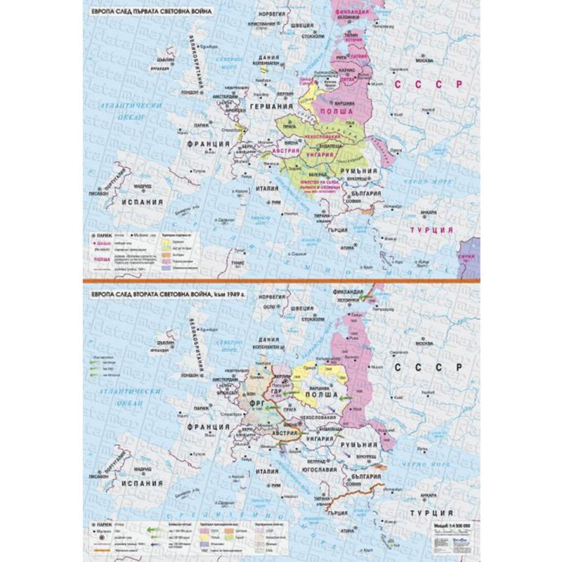 Карта Европа след първата световна война и след втората световна война към 1949 г.