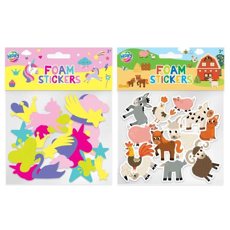 Moxy Стикери, от пяна, асорти - еднорог и животни от фермата, 48 броя